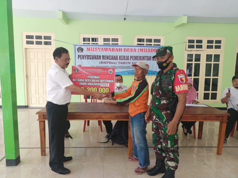 Danramil Tipe B 0808/07 Ponggok Kodim 0808/Blitar Kapten Inf Slamet Gunarto saat ditemui menegaskan, dengan adanya BLT DD semoga bisa bermanfaat bagi warga masyarakat kurang mampu yang ada di Desa Sidorejo ini.