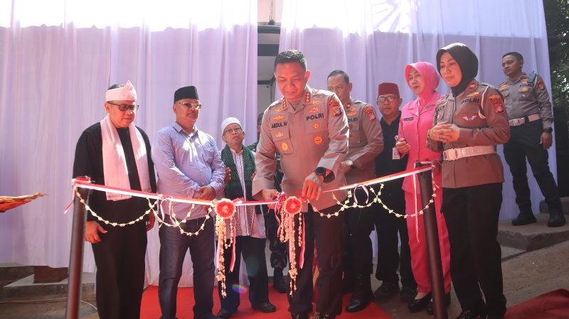 Peresmian dilakukan secara simbolis dengan pemotongan pita oleh Kapolres, kemudian dilanjutkan dengan peninjauan langsung ke dalam rumah dan sesi foto bersama dengan tim pelaksana pembangunan.