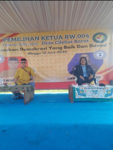Cilebut | Mata Pena News- Ketua Maung (KDM) Kecamatan Sukaraja, Satria, mengucapkan selamat kepada Turmuji yang terpilih sebagai Ketua RW 04 Desa Cilebut Barat. Pemilihan Ketua RW dilaksanakan pada Minggu, 15 Juni 2025, di Lapangan RW 04, Desa Cilebut Barat, Kecamatan Sukaraja, Kabupaten Bogor.