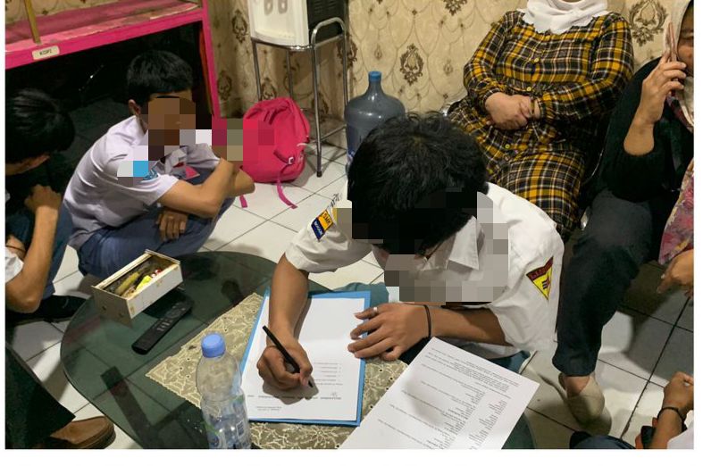 Setelah dilakukan pemeriksaan dan pendataan, kelima pelajar tersebut dikembalikan kepada orang tua mereka.