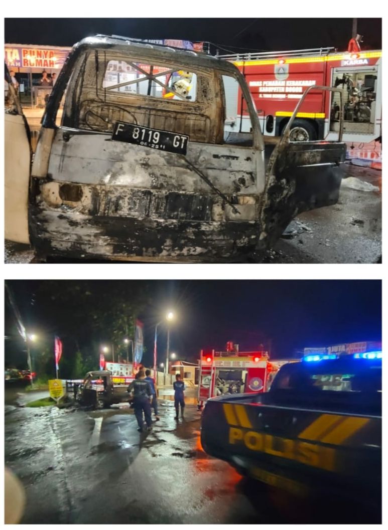 Bogor | matapenanews.com- Poles Bogor – Kamis malam, 11 April 2024, sekitar pukul 20.00 WIB, sebuah kebakaran melanda satu unit kendaraan mobil Suzuki Losbak dengan nomor polisi F-8119-GT. Kejadian tersebut terjadi di depan Perumahan Mulia Land Bogor, Desa Cibatok II, Kecamatan Cibungbulang, Kabupaten Bogor.