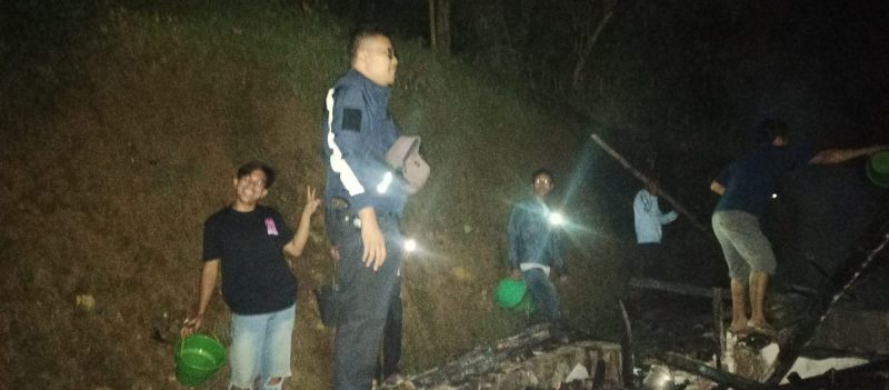 Kejadian yang berlangsung pada Senin malam sekitar pukul 23.15 WIB ini mengakibatkan rumah milik seorang warga bernama Arnah terbakar habis.