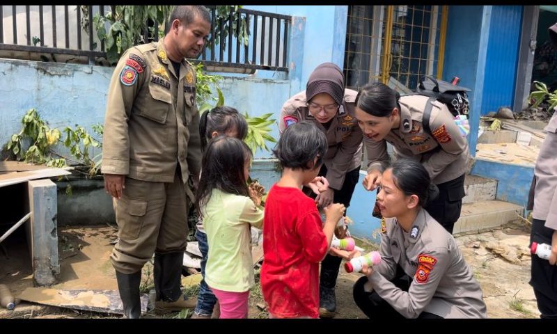 Diturunkan personil Polres Bogor baik dari sat samapta, polwan dan Polsek Gunung putri, sebagai wujud pelayanan publik tugas kemanusiaan kepedulian melakukan pendekatan terhadap warga masyarakat yang kesusahan akibat musibah bencana alam banjir bandang tersebut.
