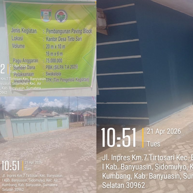 Banyuasin | Mata Pena News — Proyek pembangunan jalan paving blok di Desa Tirto Sari, Kecamatan Kecamatan Mariana, Kabupaten Banyuasin, menjadi sorotan. Kegiatan yang bersumber dari anggaran PBK (Silpa Tahun Anggaran 2025) dengan nilai sekitar Rp75.000.000 ini diduga tidak dilaksanakan sesuai dengan Rencana Anggaran Biaya (RAB).
