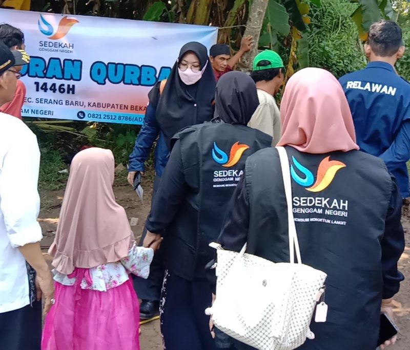Bersama dengan Santri Yayasan Marifah Qothrun Nada, Yayasan Sedekah Genggam Negeri (SGN) yang bermarkaz di Kecamatan Cibitung Kabupaten Bekasi, di tahun 2025 ini, menjembatani para donatur dan orang baik, mengadakan pembagian daging Qurban di wilayah Selatan Kabupaten Bekasi. Jumat (6/6)